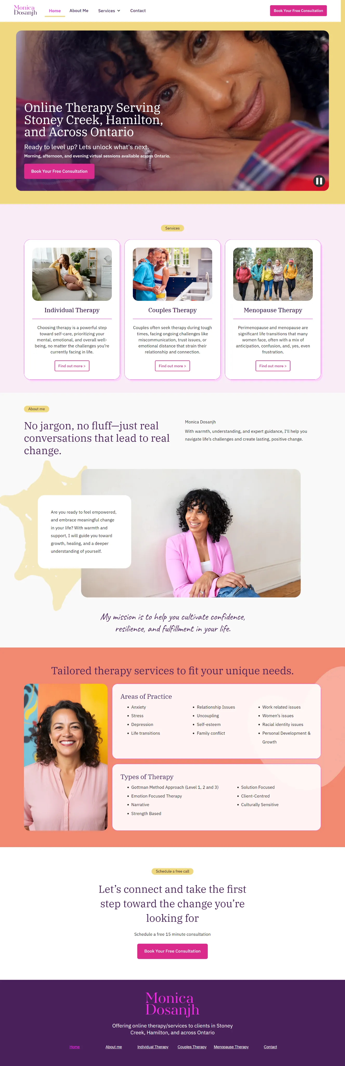 Monica Dosanjh was ready to launch her own therapy practice after years of working within established clinics. She had the expertise, the clientele, and a clear sense of who she wanted to serve — but no brand, no website, and no digital presence to call her own.
